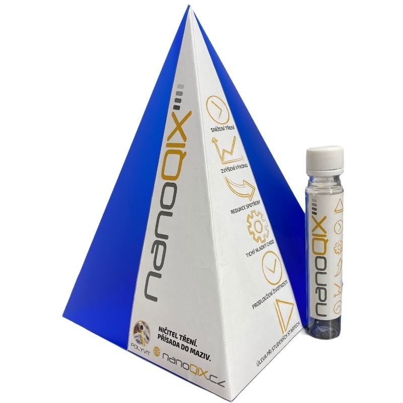 Produkt nanoQIX PolyVit je složen ze speciálně syntetizovaných nanodispergovaných prášků z oxidu křemičitého, oxidu hlinitého a tepelně štěpeného interkalovaného grafitu s velikostí částic nejvýše 20 nanometrů anavržen tak, aby snižoval vnitřní mechanické ztráty a chránil třecí páry před opotřebením u strojů a mechanismů
