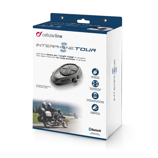 Interphone TOUR dokáže spojit až 4 motorkáře a má maximální dosah 1,5 km. Je kompatibilní se všemi smartphony s technologií Bluetooth, umožní vám hovory se spolucestujícími, poslech hudby nebo příjímání instrukcí z GPS navigace.