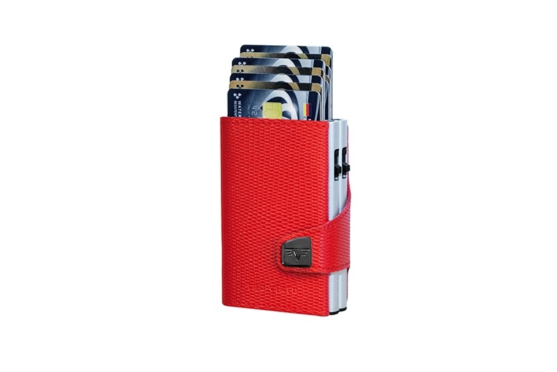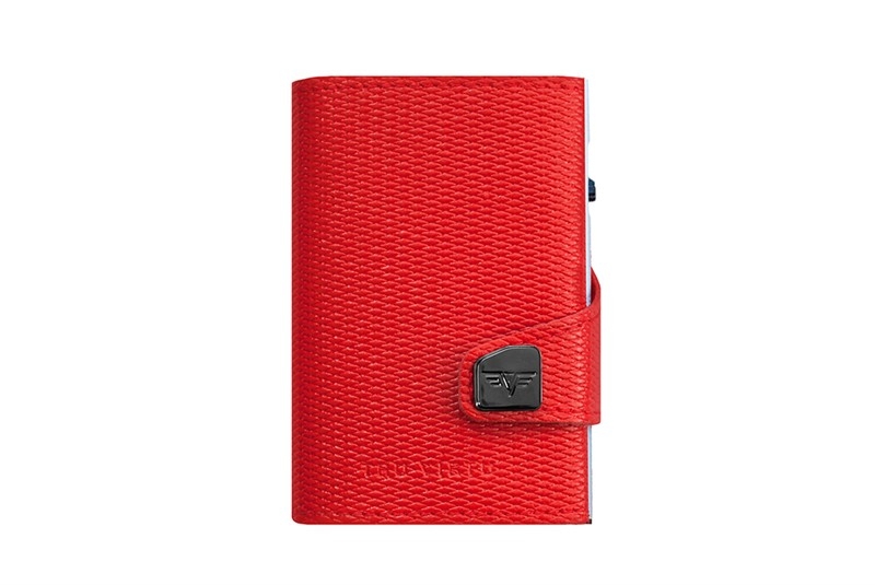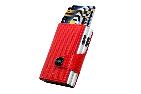 Sofistikovaná a intuitivní peněženka z eloxovaného hliníku s luxusním povrchem z italské kůže s patentovanou technologií otvírání připomínající používání smartphonu.