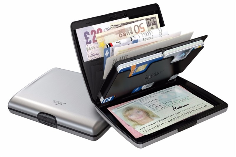 Prostorná peněženka z eloxovaného hliníku určená na 10 kreditních karet, bankovky, účty, osobní doklady a vizitky. Pouzdro ochrání vaše karty před neautorizovaným skenováním a demagnetizací a rovněž před mechanickým poškozením a nepřízní počasí.