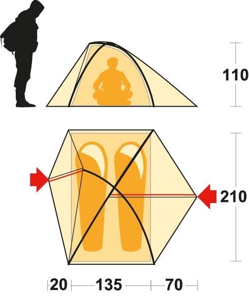 Dvouplášťový ultralehký stan pro dvě osoby.