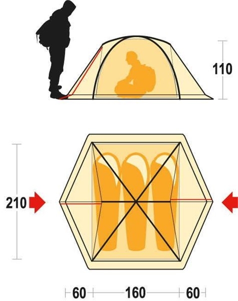 Ultralehký stan pro tři osoby s vynikajícím odvětráním a duralovou konstrukcí. Vnitřní využitelný prostor je zvětšen díky kolmo vedené duralové výztuze.