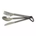 Plně funkční ultralehký titanový příbor pro stylové expediční kempování má velmi nízkou hmotnost. Oproti jednotlivým kusům (nůž, vidlička, lžíce, spork) z naší nabídky není skládací. Včetně karabiny a obalu.