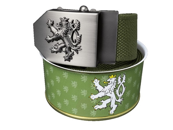 Textilní opasek šířky 40 mm, 3D kovová přezka s českým lvem.