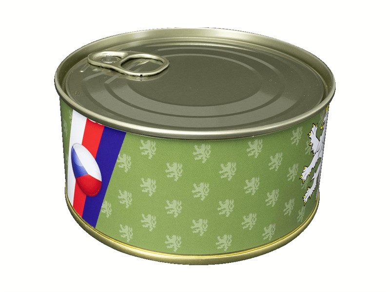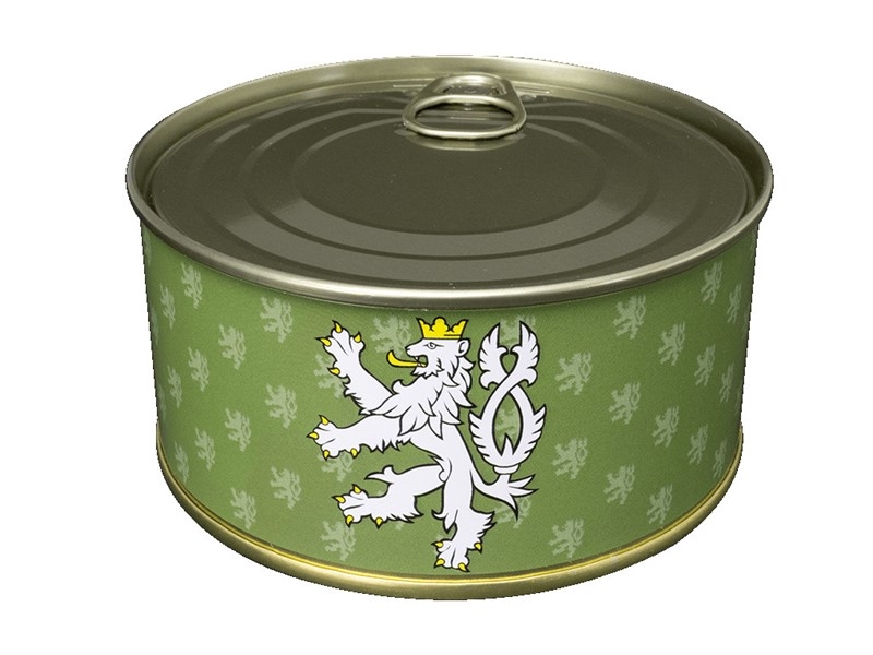 Dárková plechovka o velikosti 10 cm je doplněna barevnou etiketou. Otevírá se jako klasická konzerva za "ouško" (bez otvíráku). Tento originální způsob otvírání dárku je zajímavým zpestřením pro obdarovaného.