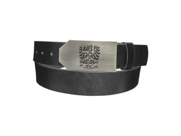 Silný kožený opasek šířky 40 mm, 3D kovová přezka s motivem moravská orlice