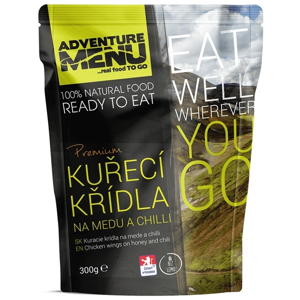 Křídla jsme zbavili konců bez masa, a tak v sáčku naleznete jen to nejlepší kuřecí, naložené přes noc v medu a kouscích chilli. Poté jsou křídla upečena hezky do zlatova, tak jak to máte rádi. Po prvním zakousnutí se vámi prožene nejprve příjemný sladký medový pocit, který hned vystřídá jemně pálivý vánek chilli. Křehké kuřecí kousky se vám budou rozpadat na jazyku a vy budete litovat, že jich je v sáčku jen pět.