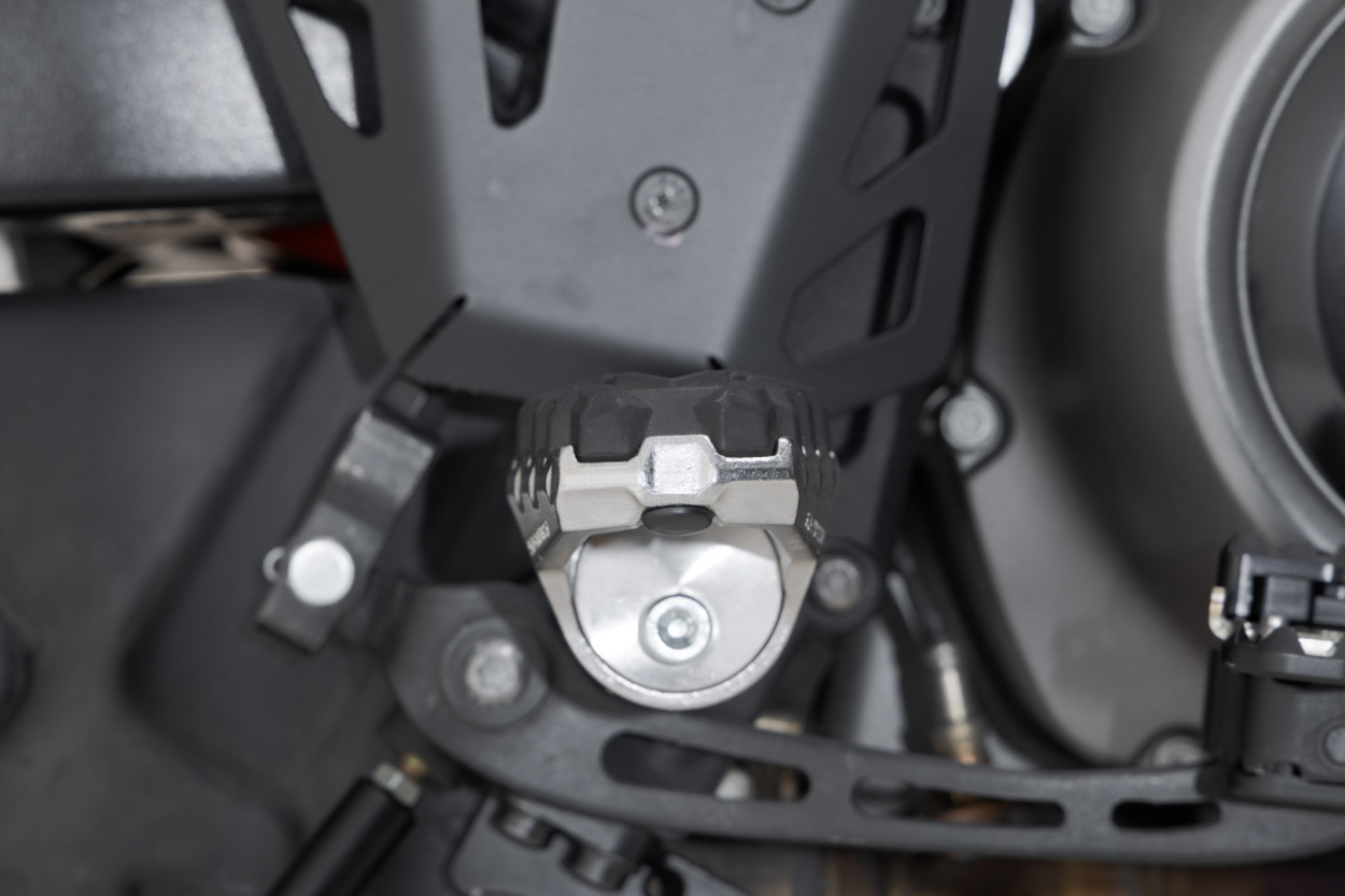 Není možné původní opěrku nohou pohodlně umístit? Pak je sada EVO stupaček od SW-MOTECH ideálním řešením pro vás. Tento sofistikovaný systém, který se skládá z rotujících prvků s pevně propojenými zuby, vám nabízí 36 možností polohování. Polohu opěrky nohou lze nastavit tak, aby byla nižší nebo posunutá dopředu nebo dozadu, a také upravit úhel tak, aby vyhovovala vašim individuálním potřebám. Kloubové adaptéry specifické pro kolo se jednoduše namontují na originální části držáku stupačky. Ukážeme vám, jak to funguje v montážních pokynech.