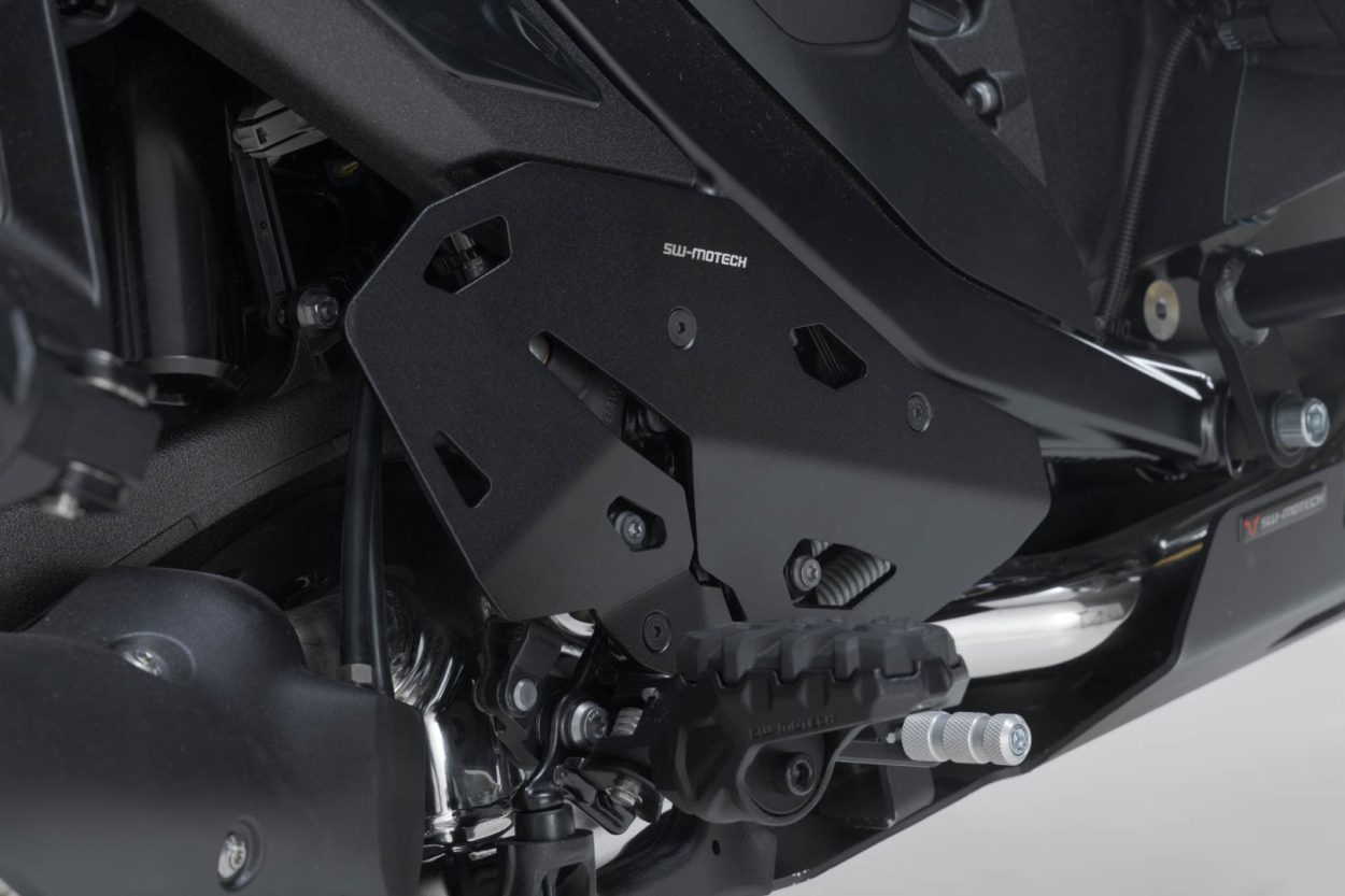 - Chrání zavazadlový prostor motocyklu před dotykem horkého výfuku, pohybů řetězu nebo kyvného ramene