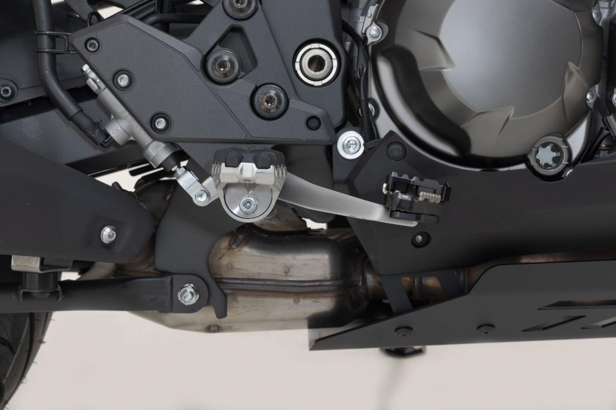 SW-MOTECH vyrobil toto prodloužení brzdového pedálu z frézovaného hliníku, aby vyhovovalo originálnímu brzdovému pedálu Kawasaki Versys 1000.
