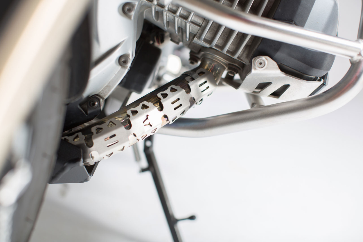 Sada ochran obsahuje následující nástavce vhodné pro BMW R1200GS / R1250GS: 2x Kryt výfukové trubky, Chránič paty, Ochrana předpažbí.