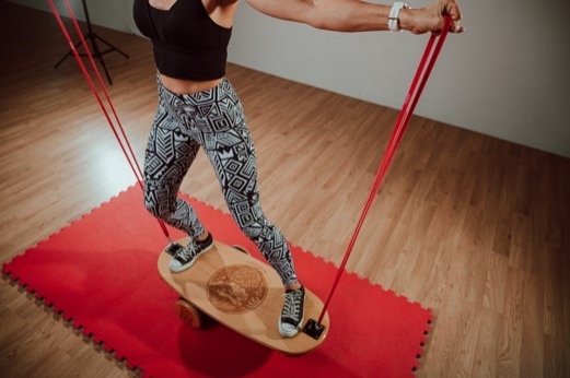 Posilovací, nebo odporová guma umožňuje posilování na balančním prkně RDB Fitboard.