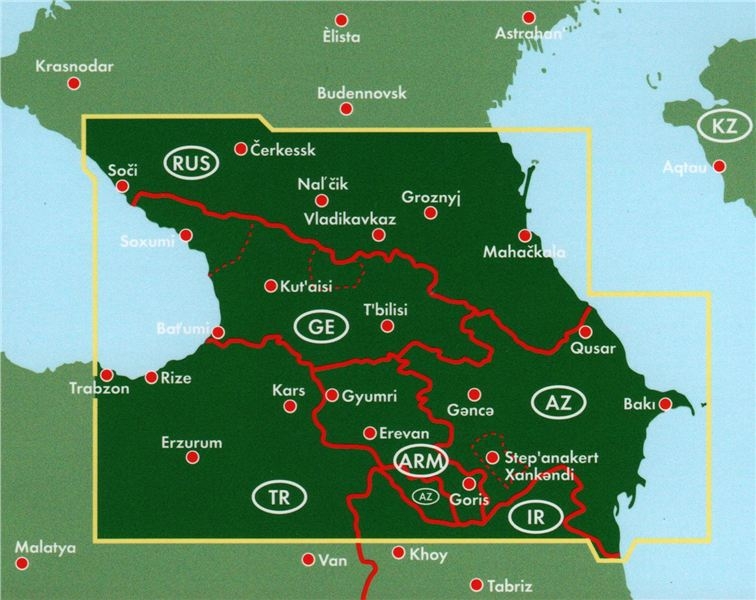 Kavkaz (Gruzie, Arménie, Ázerbájdžán) - mapa