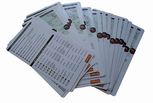 Do tankvaku si tak můžete dát buď klasicky určitý úsek složené mapy, nebo jen příslušnou kartu s itinerářem. Vysvětlivky ke kartám jsou německy, francouzsky, italsky a anglicky.
