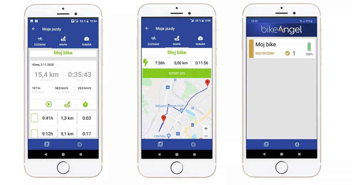 Podrobný záznam jízd: Sledujte a analyzujte svoje trasy, včetně mapových podkladů a exportu do formátu GPX pro další použití